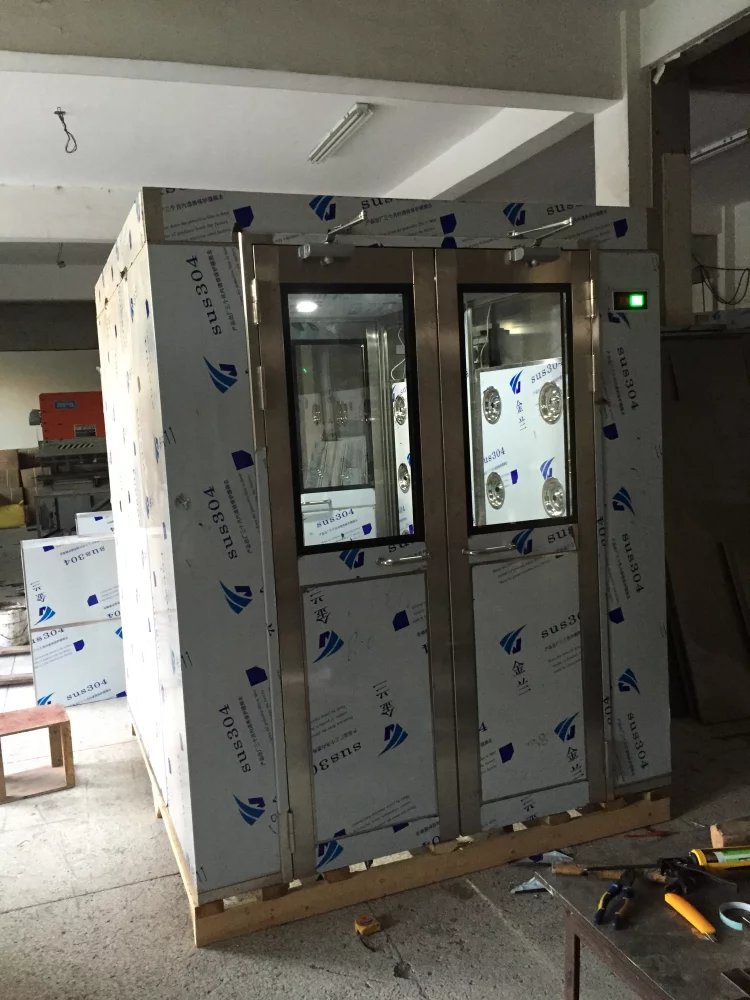 風淋室是在潔凈室內,在動態情況下,細菌及塵埃的最大發生源是操作者,當操作者進入潔凈室之前,必須用潔凈空氣吹淋其衣服表面附著的塵埃顆粒,并起到氣閘的作用。