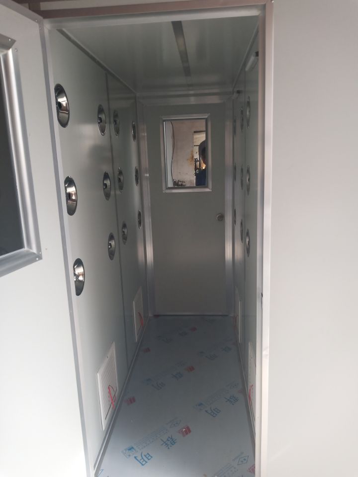 上面講到的是第一個作用,風淋室還有另外一個作用,起到氣閘緩沖的作用,眾所周知,潔凈室雖有正壓,但是禁止不同等級的空氣直接進行交融的,交融即意味著混雜,意味著潔凈空氣會受到污染和影響。而風淋室正好有兩扇門,一門打開的同時,另一個門是鎖閉,在吹淋過程中是無法打開。一來保證了室內與室外的緩沖,同時又強制對進入車間的人員和物料進行吹淋。